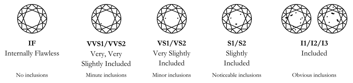 - Clarity evaluates a diamond’s freedom from internal and external clarity characteristics which occurred during formation, polishing, or wear and tear.