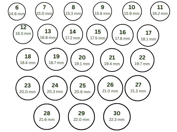 - You now have the inner diameter of your ring, use the chart to determine your ring size. When in doubt, move up a size.