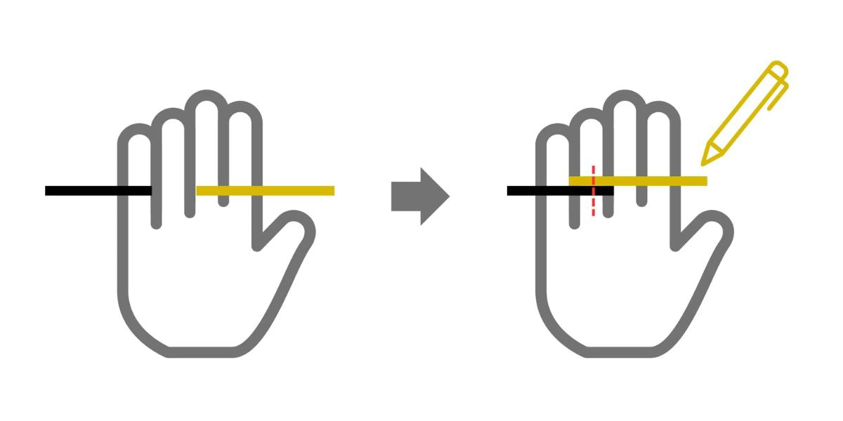 - Wrap a thin strip of paper around your finger and mark the meeting point with a pen.